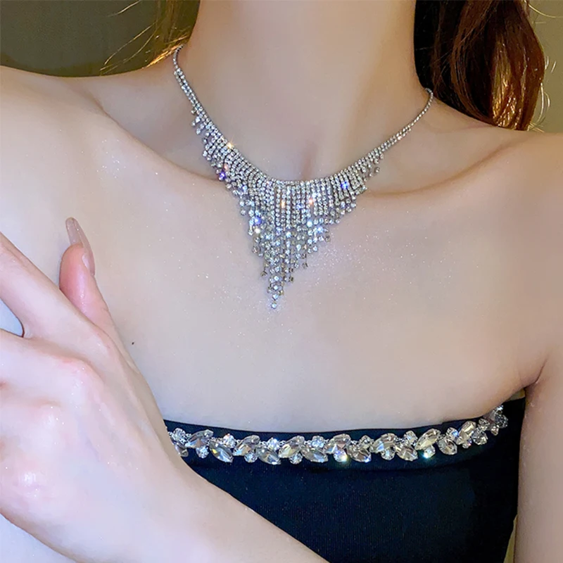 قلادة براقة من كريستال بريكسال للنساء، تصميم هندسي فاخر يضفي لمسة تألق مثالية لسهرات الجاز والفساتين الرسمية.